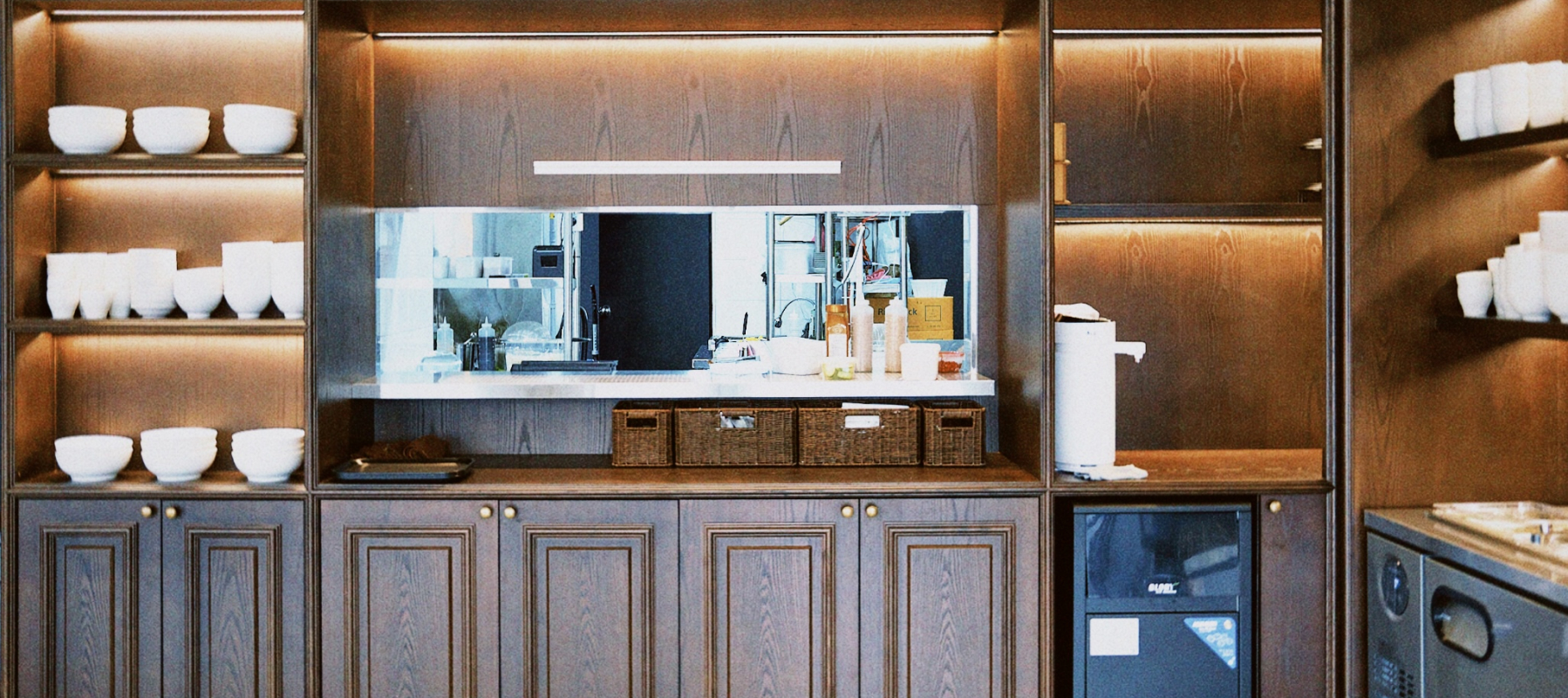 쾌적하고 넓은 공간에 앤티크한 목재가구와 조명, 음악이 어우러져 빈티지하면서도 고급스러운