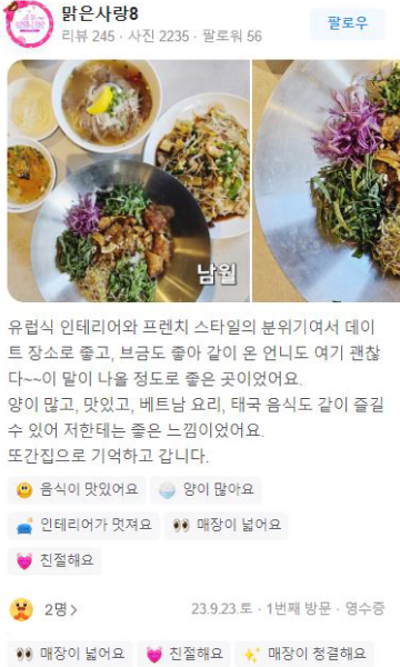 베트남 현지의 맛을 유지하면서 한국인의 입맛에 맞춘 다양한 음식을 경험할 수 있습니다.